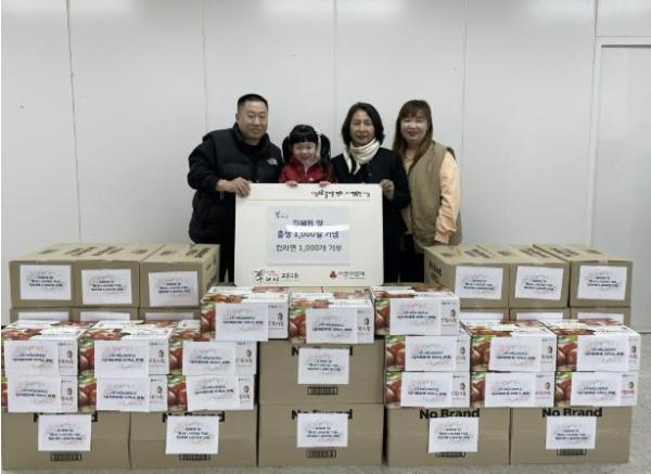 [한국뉴스타임=편집국] 구리시 교문1동행정복지센터는 5일 김순제, 라정진(따세비어) 부부로부터 생후 1,000일을 맞은 딸 혜원 양의 이름으로 어려운 이웃들에게 전달해달라는 요청과 함께 컵라면 1,000개를 기부받았다.