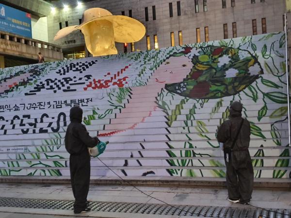 우선 서울시와 종로구·중구는 동화면세점 일대, 세종문화회관 일대, 교보빌딩, 광화문광장의 이순신장군동상과 해치마당 인근은 물론 정부청사 일대 보도와 차도, 승강장 등을 집중 방역소독했다. 추가적인 방역도 실시할 예정이다.