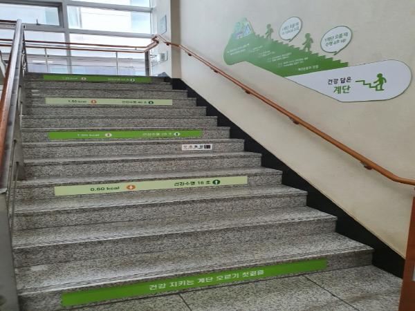 특히, 층별 계단과 벽면 판넬에는 칼로리 소모량, 건강수명 증가시간 문구뿐만 아니라 만성질환 예방을 위한 영양관리 등 건강생활실천 문구를 표기해 시민들의 건강생활실천에 대한 관심을 높이도록 했다.