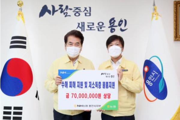 [KNT한국뉴스타임] 용인시는 14일 NH농협 용인시지부서 수해로 어려움을 겪고 있는 이재민과 저소득층을 위해 정부재난지원금 지급대행 수수료 전액인 7천만원을 기탁했다고 밝혔다.