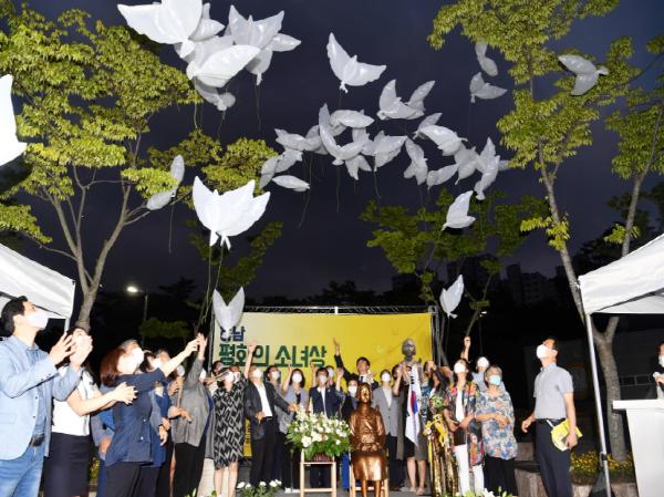 이날 행사는 건립과정을 담은 영상으로 막을 열었고 합동헌화와 위안부 피해자를 향한 묵념의 시간을 가졌다.