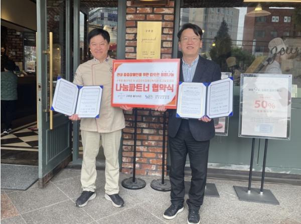 [한국뉴스타임=편집국] 남양주시 다산동에 소재한 베이커리 카페 ‘구루몽’은 지난 27일, 남양주시장애인복지관 주간보호센터와 지역 사회 취약계층에 온기와 희망을 전달하기 위해 제과류 후원 등에 대한 ‘나눔 파트너 협약식’을 체결했다.