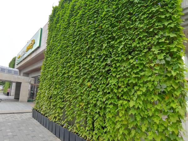 수원시가 2018년 시작한 그린커튼 사업은 건축물 외벽에 그물망·로프를 설치하고, 나팔꽃·제비콩 등 덩굴식물을 심어 식물이 그물망·로프를 타고 자라 외벽을 덮게 하는 것이다.
