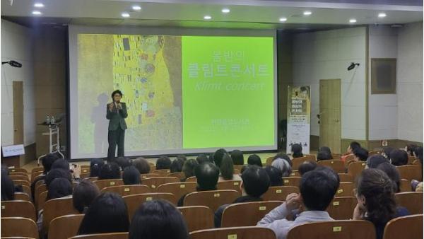 강연은 '그림값 미술사' 저자 이동섭 작가가 맡아, 오스트리아 화가 구스타프 클림트의 삶과 화려한 장식성, 상징주의 회화 등 그의 작품 세계를 깊이 있게 풀어냈다.