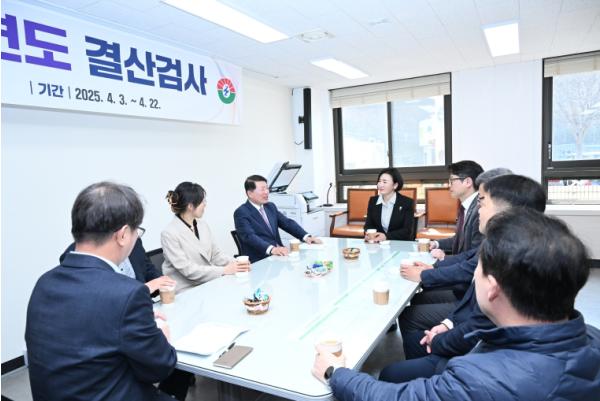[한국뉴스타임=편집국] 백경현 구리시장은 지난 3일 2024회계연도 통합결산 검사장을 방문하여 결산위원들과 간담회를 가졌다.