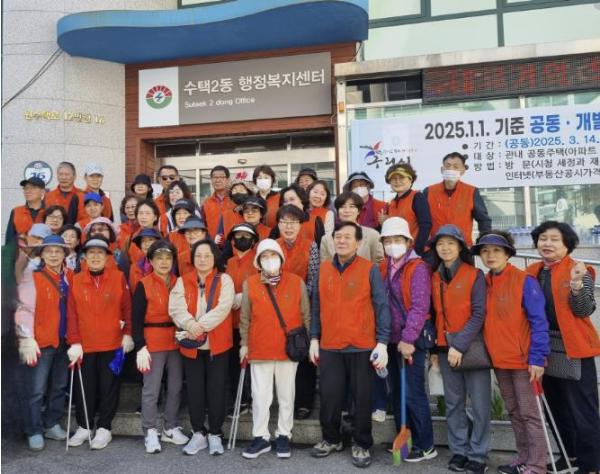 [한국뉴스타임=편집국] 구리시 수택2동행정복지센터는 4월 11일 통장협의회 47명 전 회원이 참여한 가운데 수택동 626-22번지 일대 유휴지에서 환경정화 활동을 실시했다.