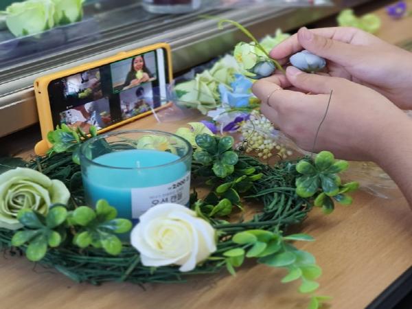 ‘청소년동반자 온라인 원예문화체험’은 코로나 우울로 야외 활동이 제한되어 핸드폰 삼매경에 빠진 청소년들의 다양한 방학 생활을 지원하기 위해 진행되었으며 코로나 확산 예방 차원에서 비대면 온라인 방식으로 백학면, 전곡읍, 연천읍에 거주하는 8명의 청소년들이 동시에 접속하여 캔들 플라워리스 만들기 활동을 하였다.