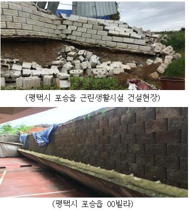 또한 인·허가 시 제출된 구조 검토서와 다르게 말뚝기초가 설치되거나, 옹벽 상단부에 우수 유입 방지시설이 미설치 된 경우, 옹벽 상단에 추가 구조물을 설치하는 등 설계·시공 측면에서의 기술적인 문제도 다수 발견됐다.