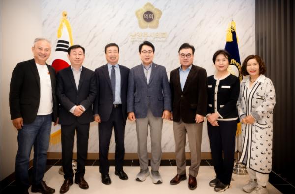 [한국뉴스타임=편집국] 조성대 남양주시의회 의장은 28일 의장실에서 녹촌기업인협의회 임원진과 소통의 시간을 가졌다.
