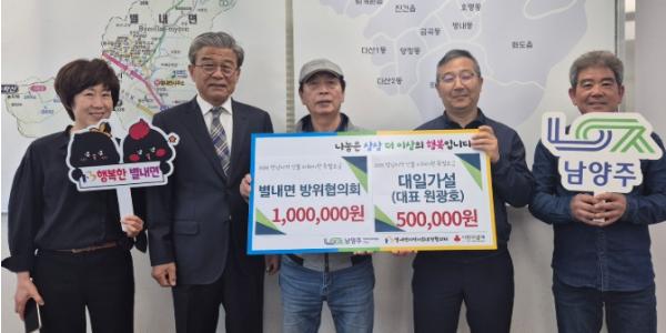 [한국뉴스타임=편집국] 남양주시 별내면은 28일 별내면 방위협의회와 대일가설이 영남 지역 산불 피해 주민을 지원하기 위해 후원금을 기탁했다고 밝혔다.