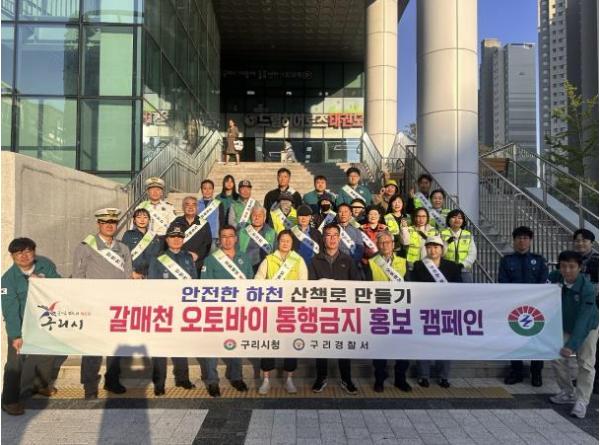 이에 시는 이 날 구리경찰서, 갈매동 기간단체 주민 등 총 40여 명과 함께 갈매천 산책로와 자전거도로 약 3.8km를 순회하며 오토바이 통행금지를 위한 현장 계도를 실시하고 교통규칙 준수 등을 적극 홍보했다.
