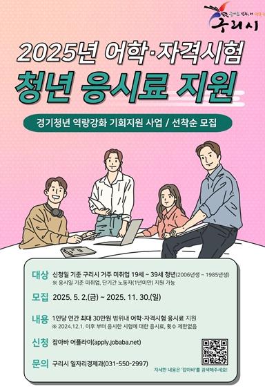 백경현 구리시장은 “이번 사업이 미취업 청년들의 취업 경쟁력 향상에 도움이 되기를 바라며, 확대된 자격증 지원 범위만큼 더 많은 청년이 자신만의 꿈과 진로를 향해 도전할 수 있기를 기대한다.”라고 말했다.