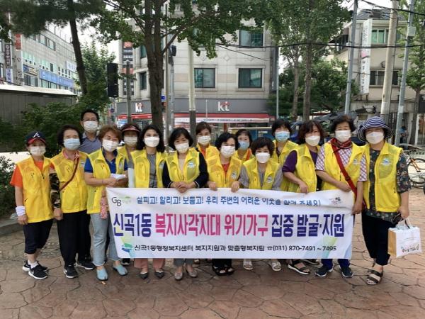 [KNT한국뉴스타임] 의정부시 신곡1동 행정복지센터(권역동국장 조민식)는 지난 19일 이웃사랑을 실천하는 봉사자 모임인 ‘신곡권역 희망넝쿨단’과 함께 장마가 끝나고 본격적으로 찾아온 무더위에 대비, 폭염 취약 가구 등 복지사각지대 발굴 홍보 캠페인을 실시했다.