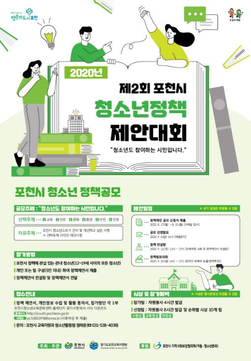 [KNT한국뉴스타임] 포천시는 청소년의 눈높이에 맞춰 청소년에게 필요한 정책을 기획·추진하기 위한 ‘2020년 포천시 청소년정책제안대회(청참시)’를 개최한다.