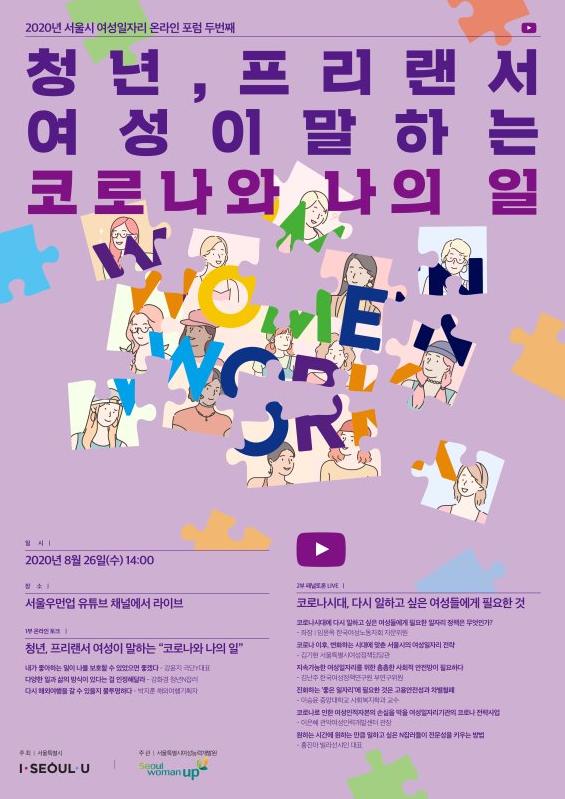 [KNT한국뉴스타임] 서울시 주최, 서울시여성능력개발원 주관 『2020년 서울시 여성일자리 온라인포럼 두번째』가 8월 26일(수) 14시, 유튜브 ‘서울우먼업’ 채널에서 라이브로 개최된다.