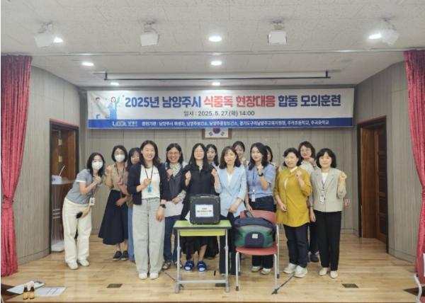 [한국뉴스타임=편집국] 남양주시는 27일 주곡초등학교에서 학교급식 식중독 사고를 가정한 ‘2025년 식중독 현장대응 모의훈련’을 실시했다.