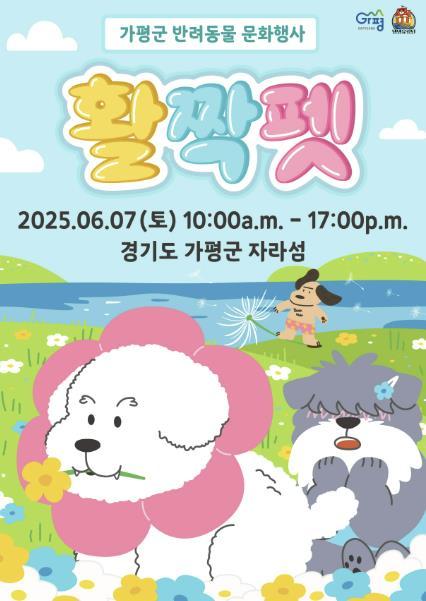 [한국뉴스타임=편집국] 가평군은 오는 6월 7일 자라섬 중도 일원에서 ‘2025년 상반기 반려동물 문화행사 및 문화교육 활짝펫’을 개최한다고 밝혔다.