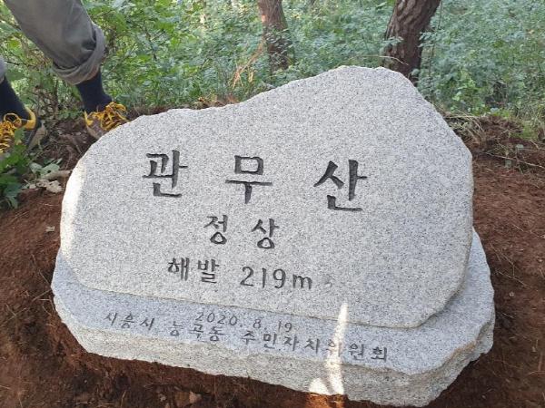 [KNT한국뉴스타임] 시흥시 능곡동 주민자치위원회(서선자 위원장)가 능곡동 유일한 산인 관무산 정상에 지난 8월 19일 표지석을 설치했다.