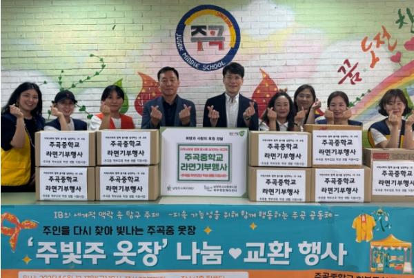 [한국뉴스타임=편집국] 남양주시는 지난 13일, 주곡중학교 학부모회가 자원 재활용 행사 ‘주빛주 옷장’을 통해 마련한 라면 10박스를 북부희망케어센터에 전달했다고 밝혔다.