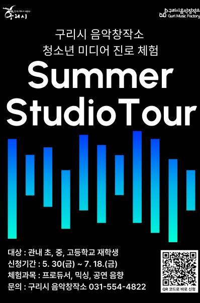 ‘썸머 스튜디오 투어’ 사업은 다양한 형태의 음악과 미디어 매체에 익숙한 초·중·고 학생들을 대상으로 음악 녹음 스튜디오를 방문하여 다양한 관련 체험을 하며 문화예술에 참여하는 기회를 제공하고 창의적 사고 도출을 돕는 진로 탐색 지원 사업이다.