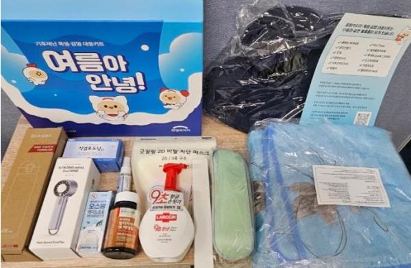 이번 기후재난 구호키트는 안전한 여름나기를 위해 마스크, 영양제, 모자, 쿨매트, 양우산, 손 선풍기 등 다양한 물품으로 구성됐으며, 방문건강 관리 등록자 중 주거환경 및 감염병에 더욱 취약한 홀로 어르신과 장애인 등 100개 가구를 대상으로 배부됐다.