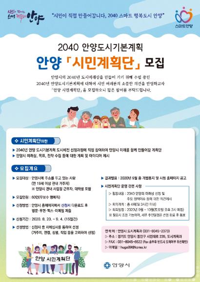 안양시가‘2040년 안양도시기본계획’수립에 참여할「안양시민계획단」60명을 공개 모집한다.