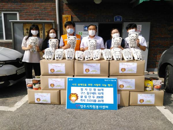 센터는 이날 행사에서 구스 침구세트, 즉석 조리식품 등 실생활에 필요한 생활용품과 시각장애인을 위한 점자인형 등으로 구성된 나눔박스를 양주시각장애인연합회(회장 현대옥)에 전달했다.