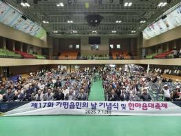 [한국뉴스타임=편집국] 가평군 가평읍은 지난 1일 가평체육관에서 ‘제17회 가평읍민의 날 기념식 및 한마음 대축제’를 열고 지역민 1,000여 명이 참여한 가운데 화합과 지역발전 의지를 다졌다고 밝혔다.