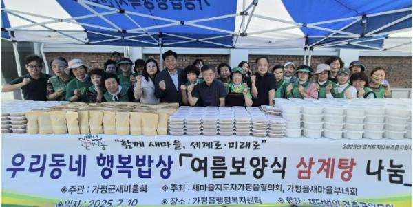 [한국뉴스타임=편집국] 가평군 가평읍은 새마을지도자가평읍협의회와 가평읍새마을부녀회가 10일 행정복지센터에서 ‘여름 보양식 삼계탕 나눔’ 행사를 성황리에 진행했다고 밝혔다.
