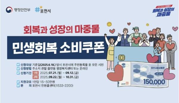한편, 민생회복 소비쿠폰은 포천시에 주소지를 둔 시민에게 기본 1인당 15만 원을 지급하며, 소득 수준에 따라 최대 40만 원까지 차등 지급하는 민생경제 회복조치다. 아울러, 소득 상위 10%를 제외한 국민에게는 10만 원의 추가 지급도 예정돼 있다.