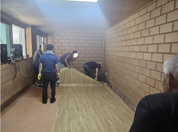 지난 27일, 화산교회 자원봉사자 7명은 침수 피해를 입은 가구를 찾아가 장판을 새로 설치했다. 장판 구입 비용은 전액 화산교회에서 부담했으며, 신도들이 자원봉사로 참여해 바닥 정리부터 장판 시공까지 마무리했다.