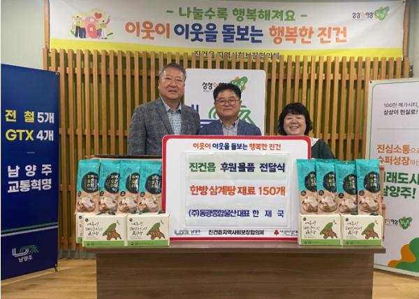 [한국뉴스타임=편집국] 남양주시는 29일 ㈜동광종합물산이 관내 취약계층을 위해 한방 삼계탕 재료 등 건강식품 190개를 후원했다고 밝혔다.