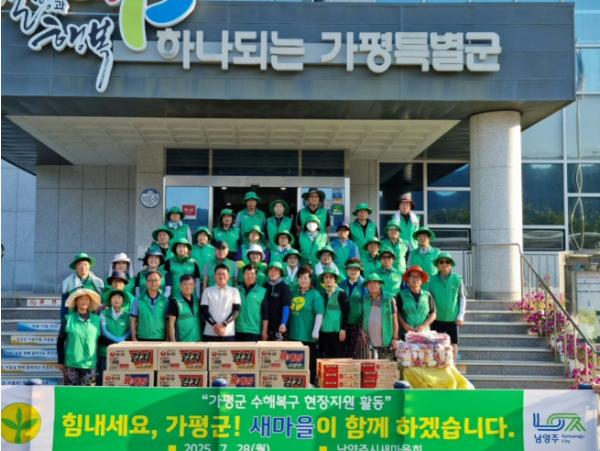 [한국뉴스타임=편집국] 남양주시는 28일 (사)남양주시새마을회가 특별재난지역으로 지정된 가평군 북면 백둔리 일대의 수해복구를 위해 긴급 지원 활동을 펼쳤다고 밝혔다.