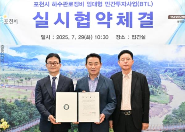 [한국뉴스타임=편집국] 포천시는 지난 29일 ‘포천시 하수관로정비 임대형 민간투자사업(BTL)’에 대한 실시협약을 체결했다.