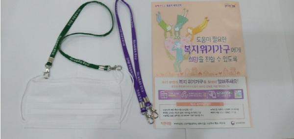 마스크 목걸이는 마스크 양쪽에 연결해 사용하는 방식으로 마스크가 바뀌거나 분실되는 등의 상황을 예방할 수 있고 코로나19로 실직 및 어려움에 처한 가구 상담 혹은 내방 민원인 상담 후 제공하는 등 복지사각지대 발굴과 마스크 착용 생활화 홍보에 쓰일 계획이다.