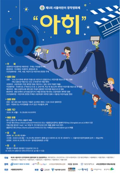 [KNT한국뉴스타임] 제5회 서울어린이 창작영화제(집행위원장 이영기)가 10월 29일(목) 동대문구체육관에서 개최된다. 제5회 서울어린이 창작영화제는 “창의적인 교육활동이 행복한 삶과 아름다운 세상의 기틀을 만든다”를 표방하며 국내외 14개 학교(기관)가 공동으로 개최한다. 특히, 올해 코로나19 상황으로 오프라인으로 열리지 못할 경우 온라인으로 실시할 계획이다.