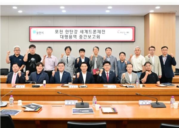 시는 25일 시청 시정회의실에서 '포천 한탄강 세계드론제전 중간보고회'를 개최하고, 성공적인 축제 개최를 위한 준비 상황을 점검했다. 이번 보고회에서는 드론 산업의 성장 가능성과 지역경제 활력을 이끌 다양한 방안을 논의했으며, 축제 완성도를 높이기 위한 추진 방향이 공유했다.
