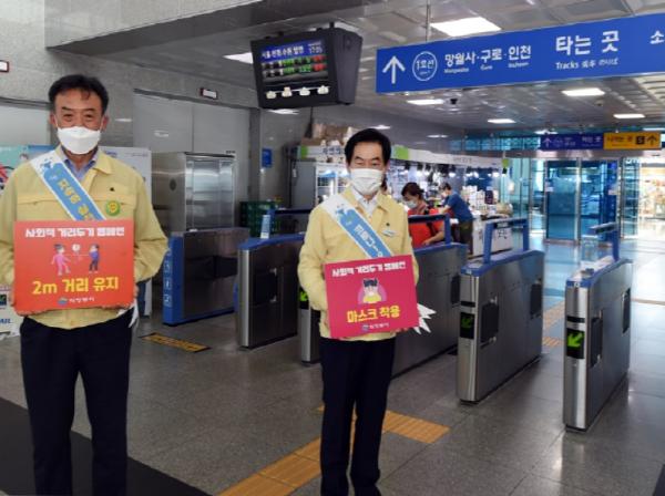 이날 캠페인은 호원권역 통장협의회 등 자생단체 회원들과 함께 주민통행이 많은 회룡역 주변을 순회하며 2단계로 강화된 사회적거리두기 생활수칙 준수를 당부하는 방식으로 전개되었다.