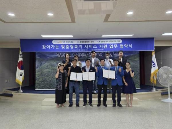 [한국뉴스타임=편집국] 가평군 청평면 지역사회보장협의체와 국제로타리3600지구 청평로타리클럽은 최근 ‘찾아가는 맞춤형복지서비스 지원’을 위한 업무 협약을 체결했다.