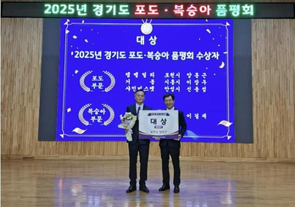 [한국뉴스타임=편집국] 포천시는 지난 17일 경기도농업기술원이 주관한 2025년 '경기도 포도 품평회'에서 내촌면 양훈근 농업인이 ‘캠벨얼리’ 부문 대상을 수상했다고 밝혔다.