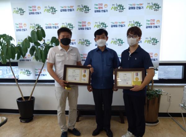 이번 갈매동 모범시민 수상자는 오경미(갈매동 한돈한우 대표. 함상진 점장 대리 수상), 백주현(갈매동 소담촌 대표) 두 명으로 지난 2018년부터 현재까지 갈매동 내 어려운 이웃들에게 한 달에 한 번씩 따뜻한 외식의 기회를 제공하며 후원 활동을 해왔다. 또한 두 사람은 구리시 특수시책인 ‘The 기쁨·The 행복 가정 만들기’ 사업에도 적극 동참하는 등 지역 사회를 위해 꾸준히 봉사활동을 해 온 공이 인정되어 모범시민 표창을 받게 되었다.