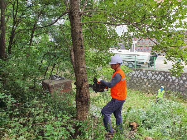 그늘막은 접어서 탄탄하게 고정하고, 가로수 지주목은 보강작업을 했다. 또 하천변 재해 우려목을 제거하고, 지하차도 배수 설비를 점검했다.
