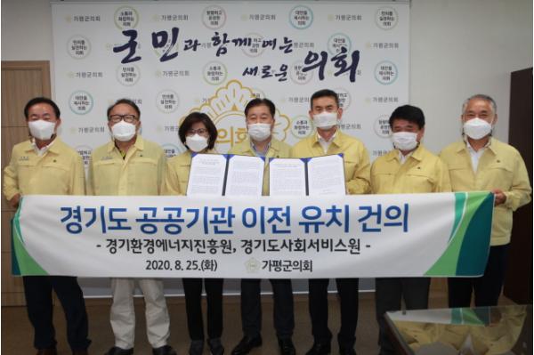 가평군의회(의장 배영식)는 25일, 의원 일동 명의로 경기도 공공기관 이전 유치에 대한 2건의 건의문을 발표했다. 경기도가 지역 간 균형발전을 도모하고, 북부 및 접경지역, 자연보전권역의 부족한 행정인프라를 구축하기 위해 도내 공공기관 5개의 이전을 결정함에 따라, 군의회는 그 중 ‘경기환경에너지진흥원’, ‘사회 서비스원’2개 기관의 가평군 이전 유치를 강력히 건의하였다.