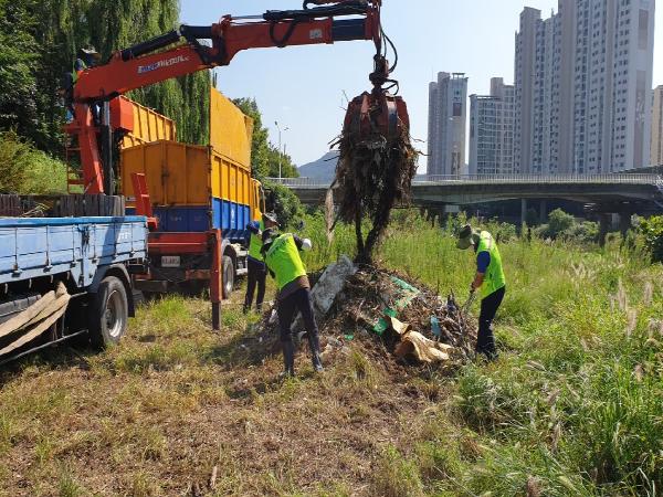 작업은 충훈1·2교에서 호현천으로 연결되는 2km, 비산대교 하부구간, 수촌교와 대한교 일대 등에 집중됐다. 교각이 있고 지대가 낮아 폭우에 상당량의 부유물이 걸려있는 지점들이다.