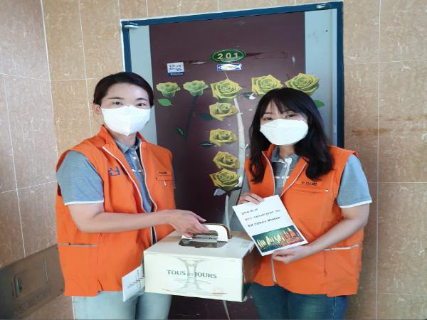 구는 이날 수지신협에서 후원한 1인당 3만원 상당의 케이크와 축하카드를 5명의 홀로어르신에게 먼저 비대면으로 배달했다.