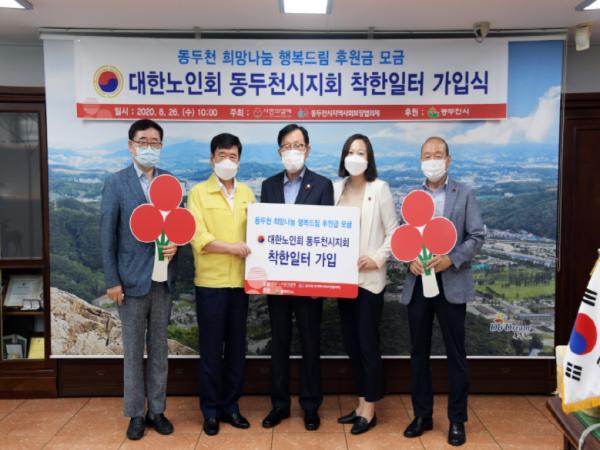 이날 행사는 대한노인회 동두천지회 직원 및 소속 이사들이 나눔을 실천하고자 매월 5천원씩 정기기부를 결정하여 개최되었으며, 대한노인회 동두천지회(회장 김성보)는 동두천시 제76호 착한일터로 선정되었다.