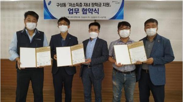 [KNT한국뉴스타임] 용인시 기흥구 구성동은 26일 지역사회보장협의체가 주민센터에서 신갈운수(주), 신갈운수(주) 노동조합과 저소득층 자녀에 장학금을 지원하는 업무협약을 체결했다고 밝혔다.