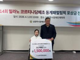 [한국뉴스타임=편집국] 남양주시는 지난 1일 남양주시장애인체육회가 제14회 밀라노-코르티나담페초 동계패럴림픽 휠체어컬링 믹스더블 종목 은메달리스트 백혜진 선수에게 포상금을 전달하고 성과를 격려했다고 2일 밝혔다.