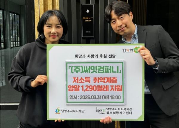 시 관계자는 “따뜻한 마음을 전해주신 ㈜써밋컴퍼니에 깊이 감사드리며, 앞으로도 민간 자원과의 협력을 강화하여 지역사회 복지 증진에 힘쓰겠다”고 말했다.