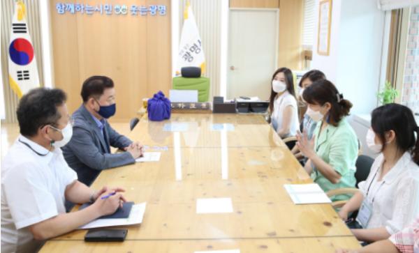 [KNT한국뉴스타임] 광명시는 그동안 숙원사업이었던「한국어린이집총연합회 광명시지회」와「광명시어린이집연합회」의 통합을 축하하고 코로나 19 장기화에 따른 긴급보육을 실시하고 있는 어린이집 관계자를 격려하고자 26일 시청에서 ‘어린이집연합회 임원과의 간담회’를 개최했다.